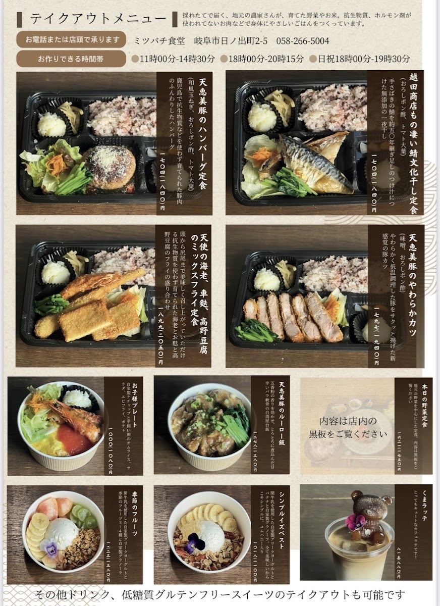Mitsubachi Shokudo offers a delightful and varied menu with a focus on Japanese comfort food, bringing together fresh ingredients and traditional flavors. A standout dish is the 若鶏と湯葉の和風あんかけオムライス (Chicken and Yuba with a Japanese-style Sauce Omelette Rice), a comforting yet sophisticated option that blends tender chicken with silky yuba, all enveloped in a savory, umami-rich sauce. Though the specific prices are not listed, the dishes reflect a balance of quality and authenticity, making it a must-try spot for anyone craving a homey, flavorful meal in the heart of Gifu. With its intimate setting and carefully crafted offerings, Mitsubachi Shokudo promises an experience that’s both fulfilling and satisfying.